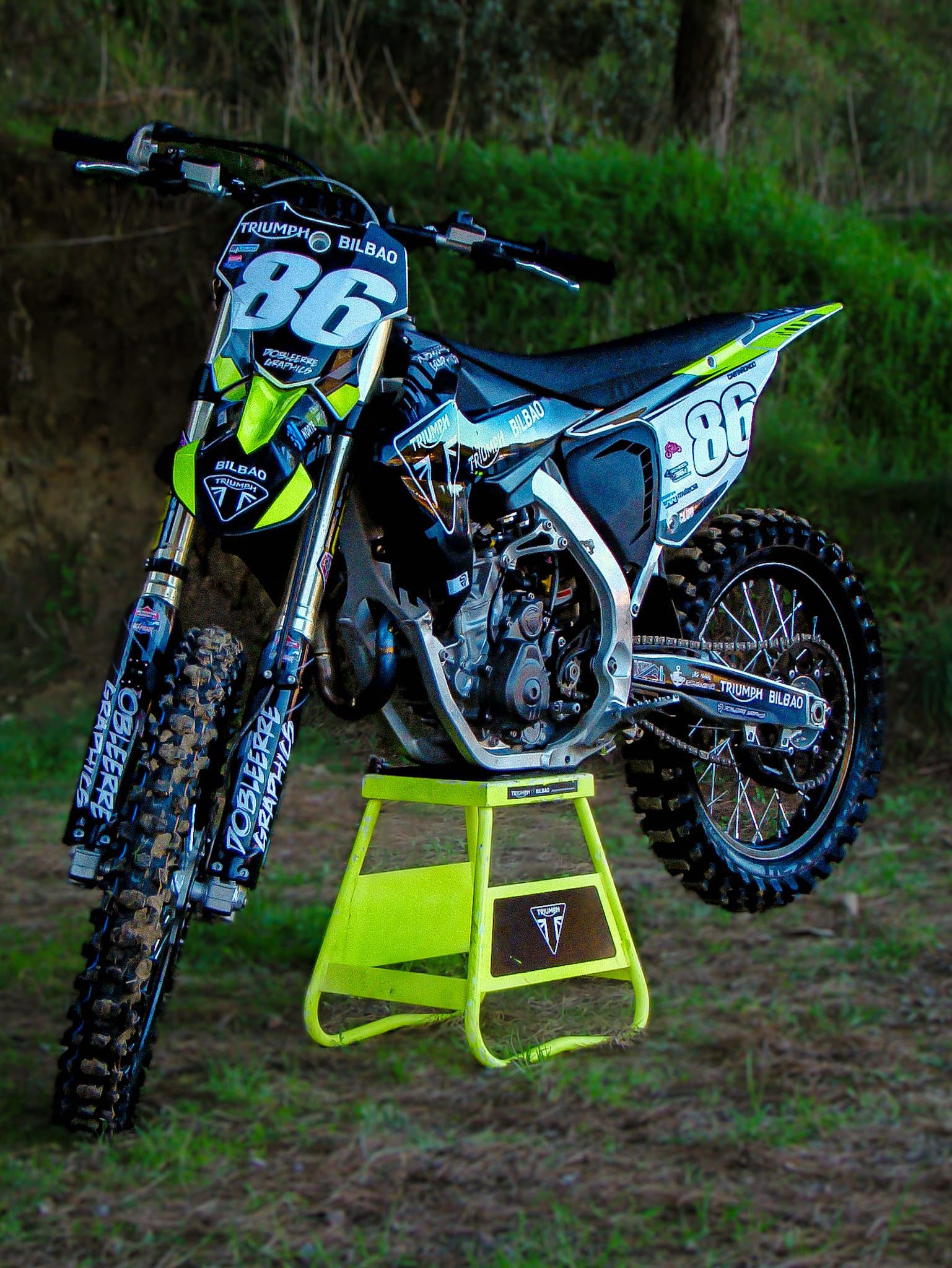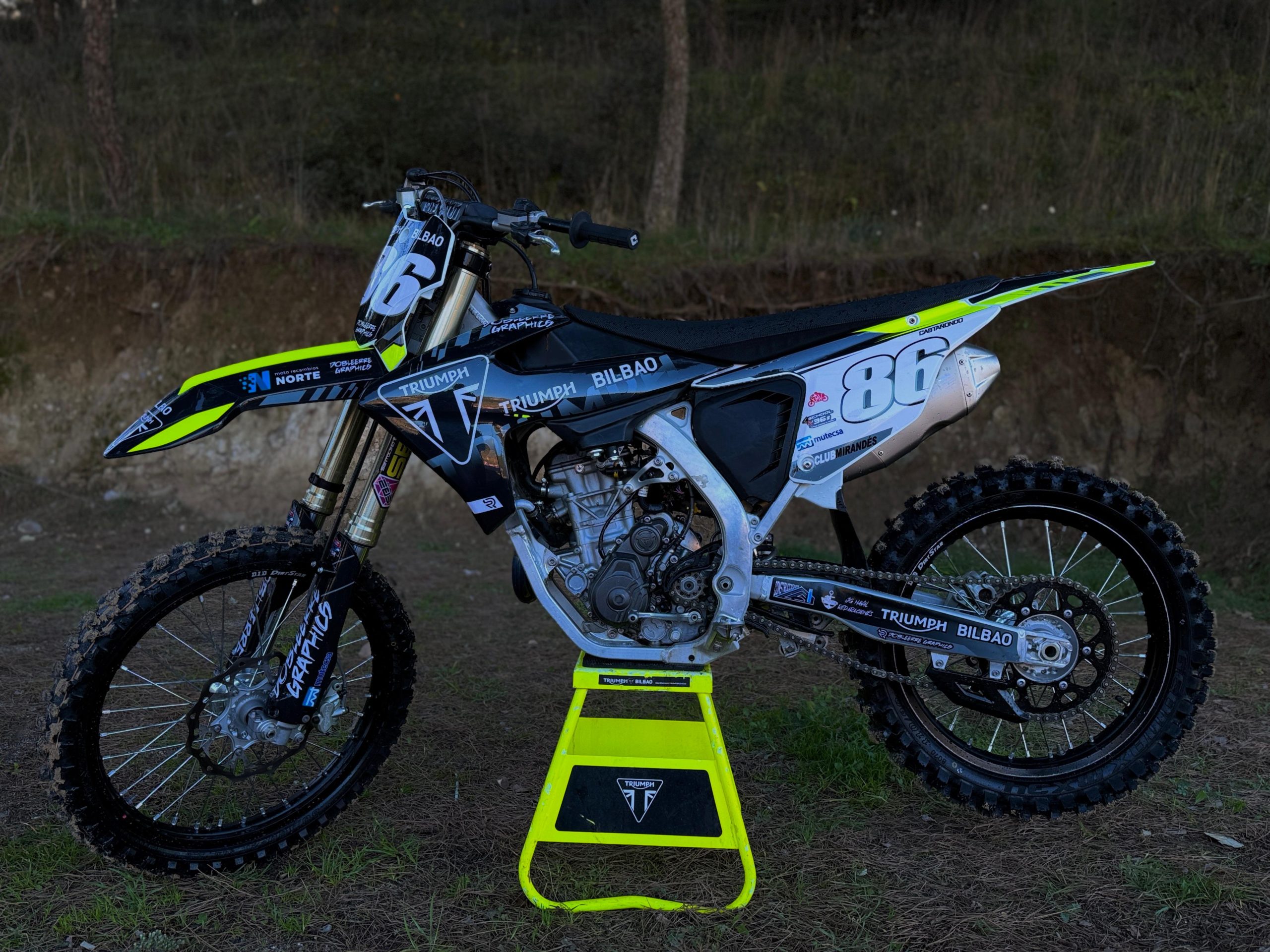 Esta temporada he estado compitiendo conuna KTM SX-F 2024, pero tambien he tenido la posibilidad de competir con la nueva TriumphTF 250-X logrando buenos resultados, por loque me considero un piloto que se adapta facilmente a cualquier moto.